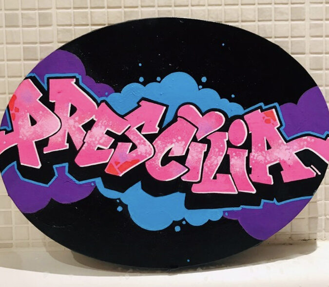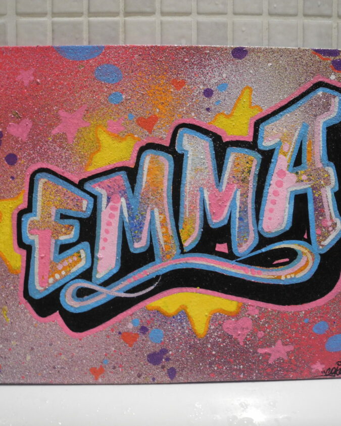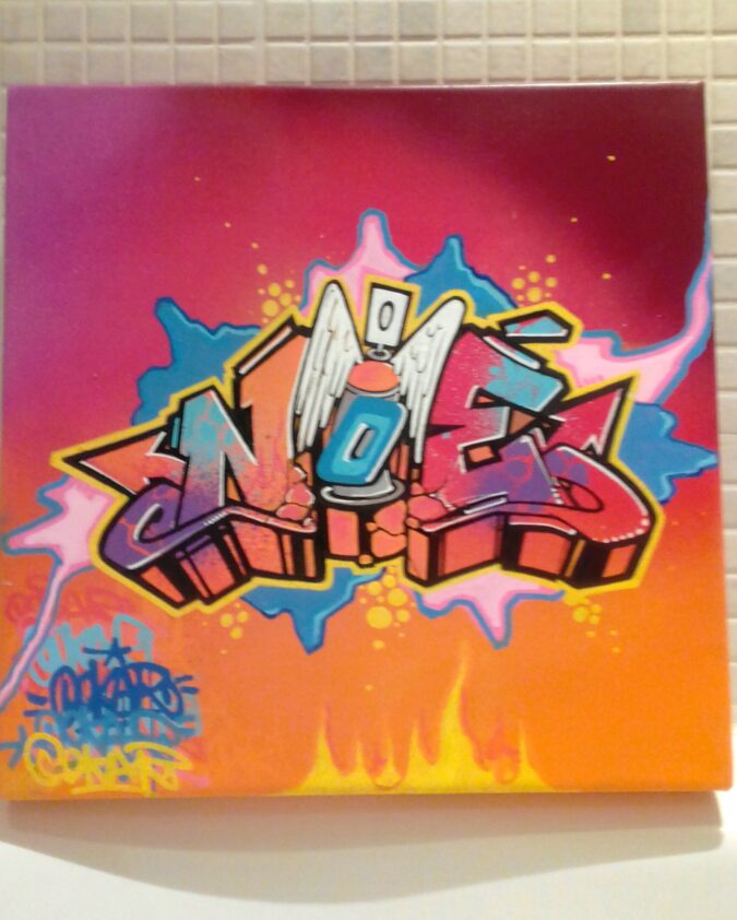 Techniques : acrylique, bombe aérosol et posca